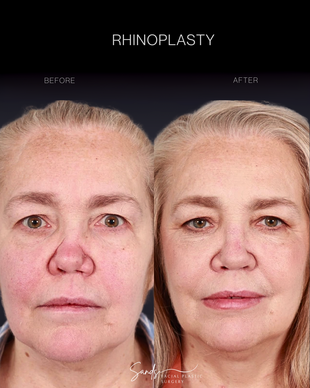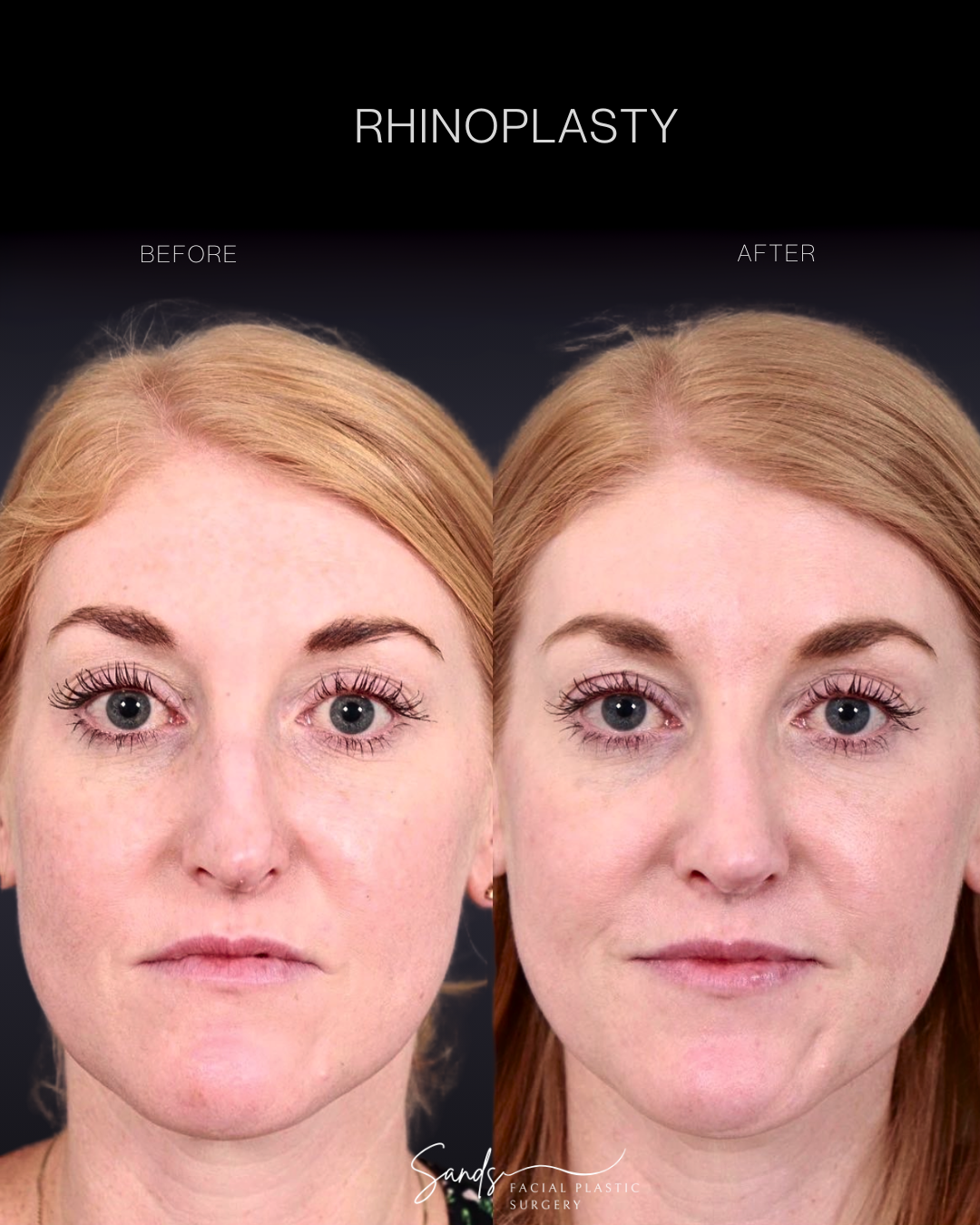 Rhinoplasty: Before and After 6 Months. Rhinoplasty can make a transformational change. In this case, reshaping a bulbous, round nose to a more defined one, along with straightening, defining, and lifting the tip has given this patient a completely different look and removed her nose as a point of distraction.